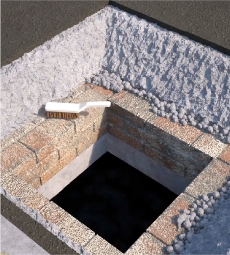 lay a coat of sealing product around the top of the manhole. the minimum recommended thickness for the coat under the frame.
