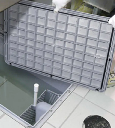 check the condition of the manhole opening and remove any dust from the support and manhole opening.
